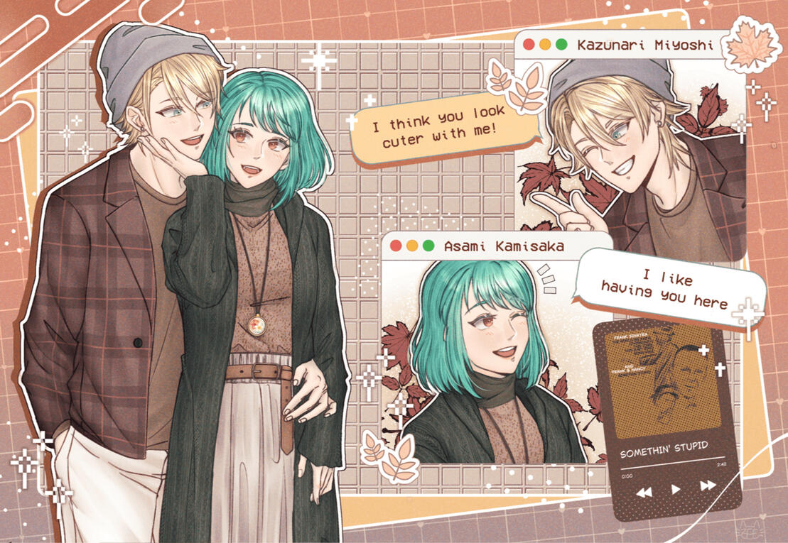 | Starts from 400k, depends on details, pose, and complexity. | customizable couple waist/thighs-up and two headshot/bust-up poses, stickers, text, and color themes. |